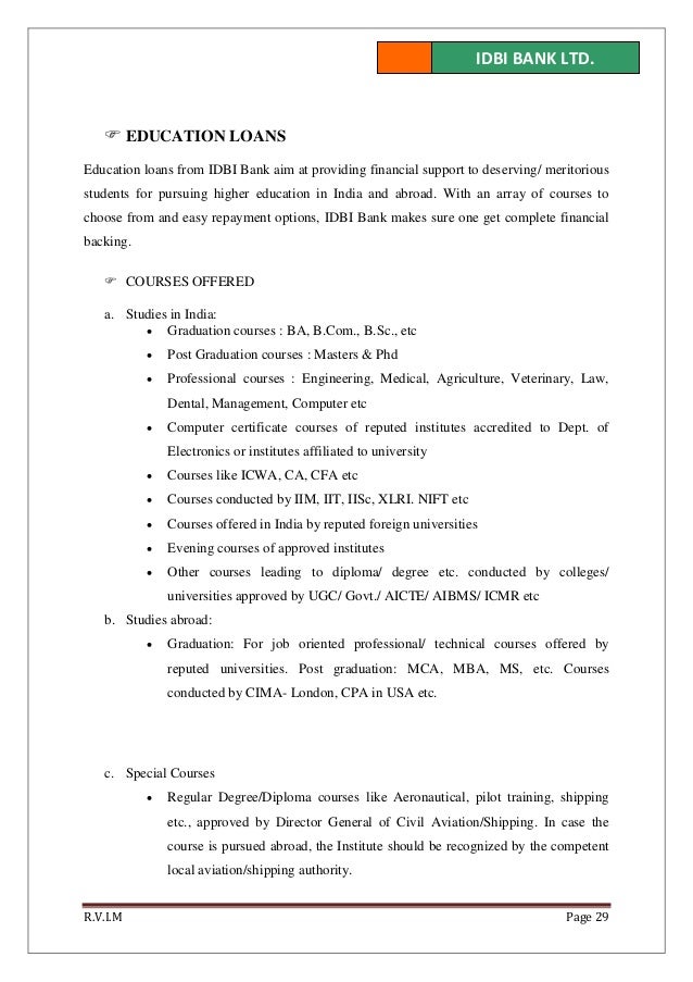 Employment or Business or Income Proof The total concessions in applicable interest rate not to exceed 100 bps (SB) account at IDBI Bank's loan processing branch and also to open NRE accounts of the students after employment/absorption in ... View Document